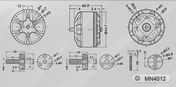 - - размеры двигателя (диаметр х длина) - 44.5 х 32.5 мм